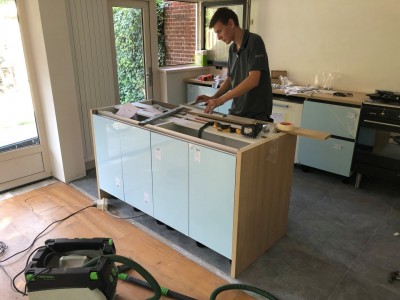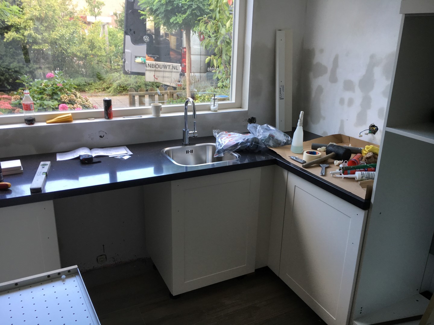 In Den Haag hebben wij deze keuken gerenoveerd. Er is een nieuw plafond gemonteerd en gestuct en er is een nieuwe keuken geplaatst. Om alles af te maken is alles opnieuw geschilderd.