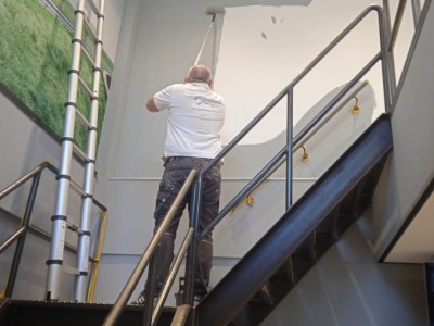 In dit kantoorpand hebben wij het trapgat in een frisse kleur groen aangebracht.