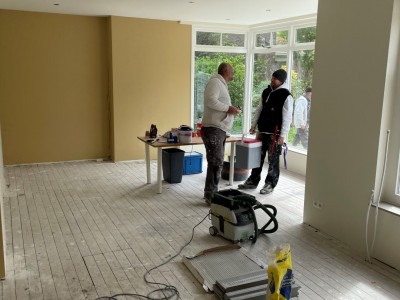 Voor de verhuur van deze woning hebben wij de plafonds gewit en de muren gesaust. Zo is de woning weer klaar voor de nieuwe bewoners.